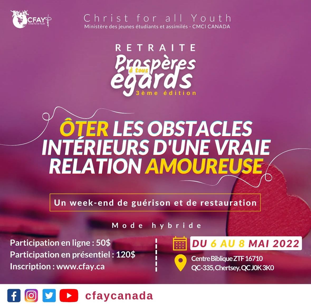 Thème: Ôter Les Obstacles Intérieurs d’une Vraie Relation Amoureuse Du 6 au 8 mai 2022...